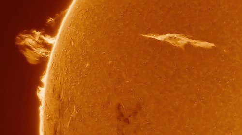 Солнце одновременно выбросило два гигантских протуберанца